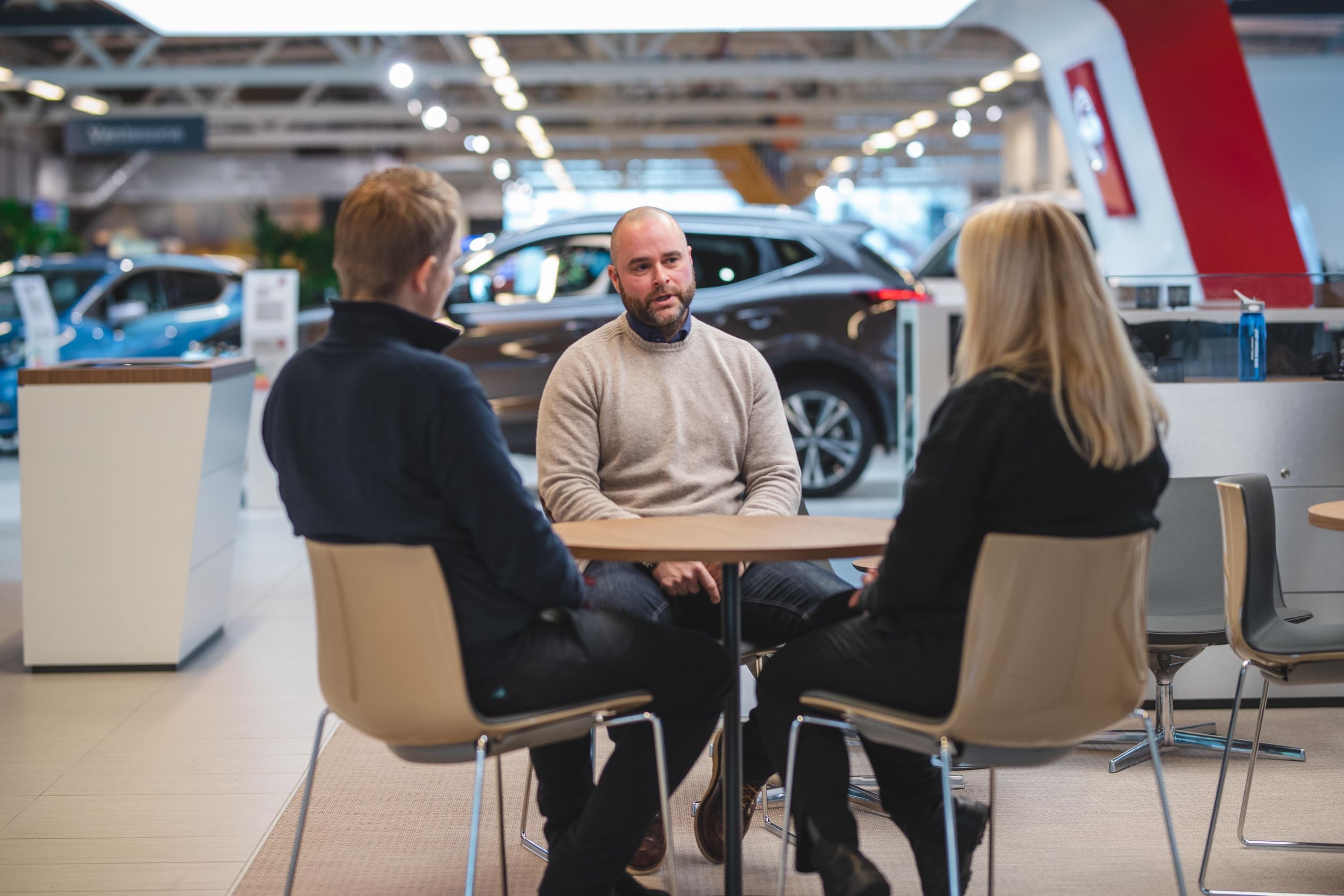 Selger hos Birger N. Haug, Fredrik Stenseth, mener det er viktig å tenke nøye gjennom bruken sin før man kjøper en eller flere biler. Her rådfører han samboerparet fra Oppegård vedrørende deres bilbruk i hverdagen.