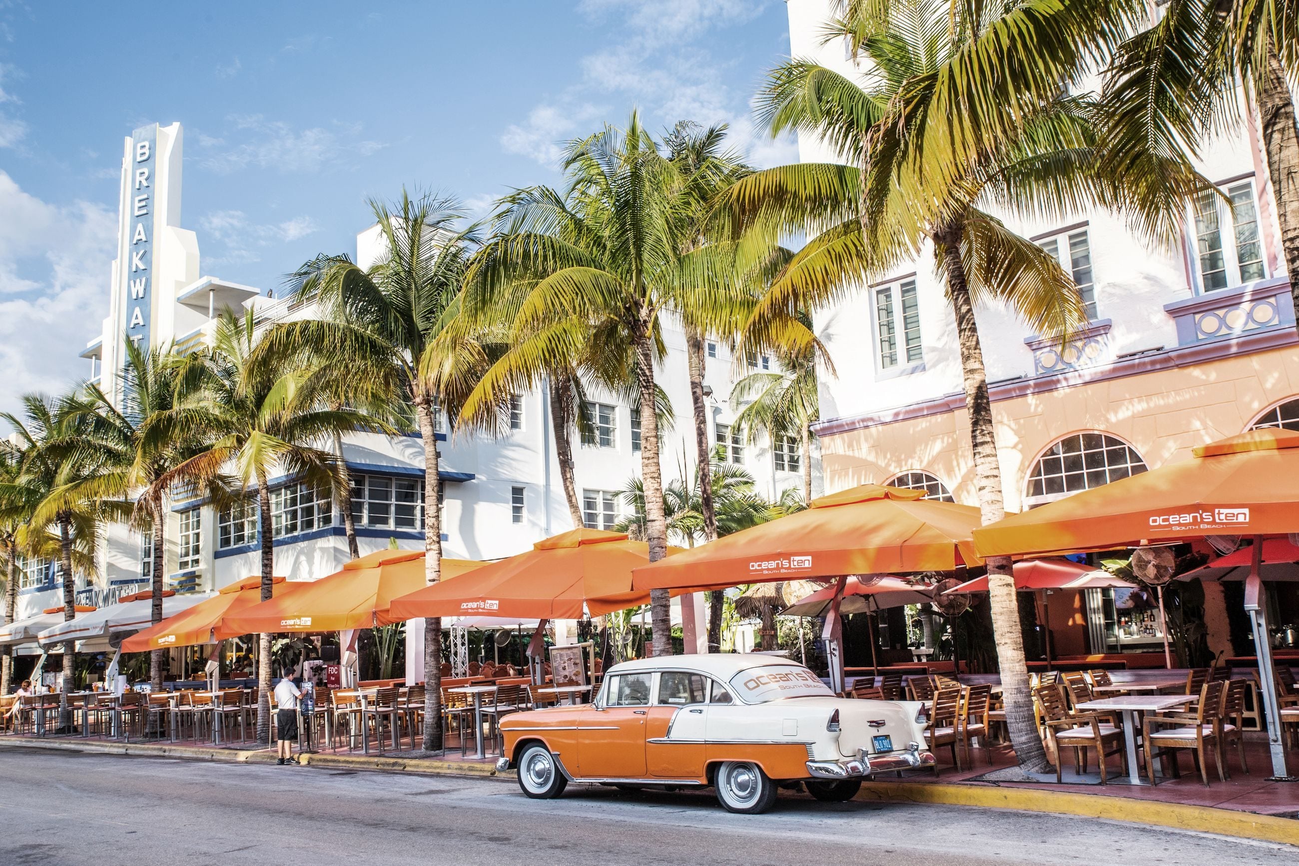 På Ocean Drive i Miami finner du art deco-distriktet, med en overflod av restauranter og hoteller bare noen skritt fra stranden.