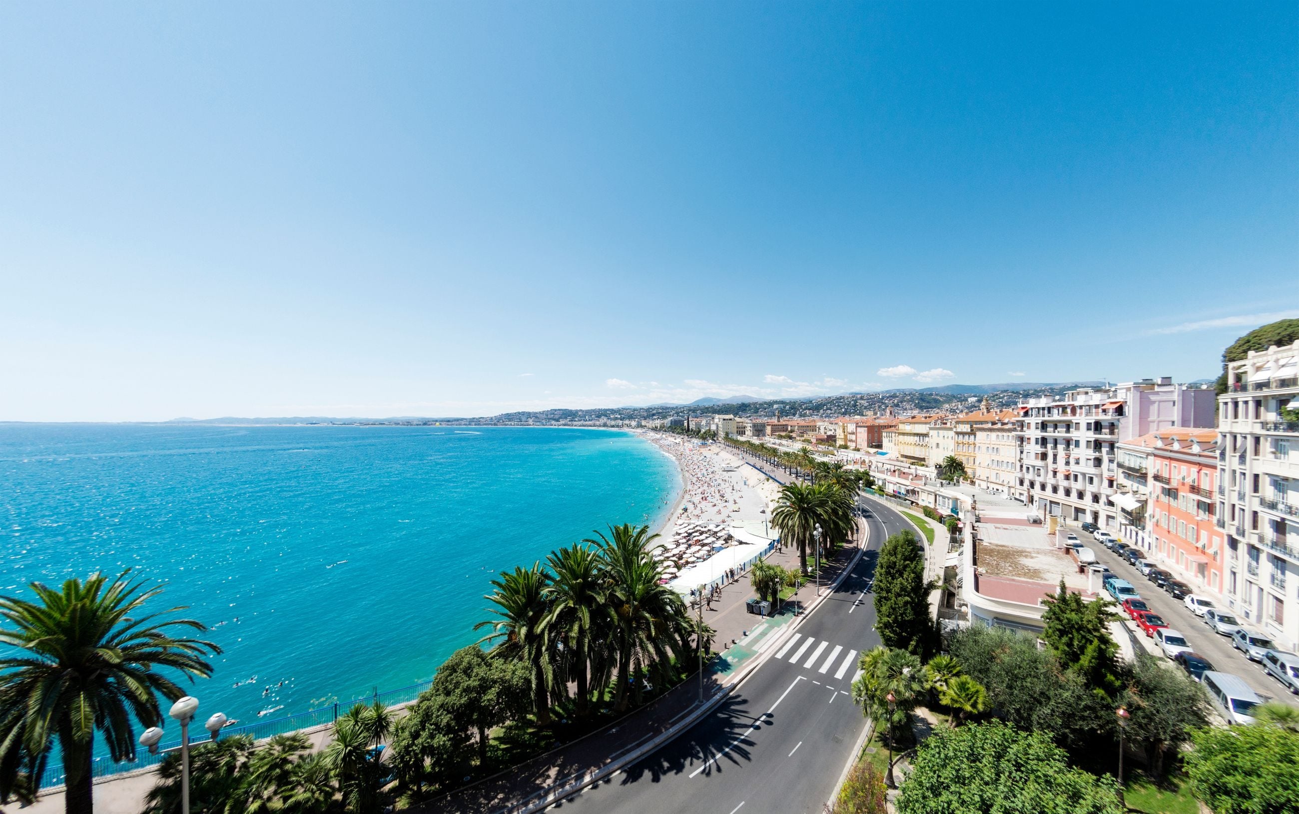 Strandpromenaden Promenade des Anglais i Nice byr på luksushoteller av ypperste klasse, og kort vei til stranden.